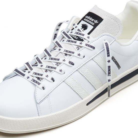 回顧 2006 年 NEIGHBORHOOD x adidas Gazelle Berlin 經典圖騰至今印象深刻,順應當時 NEIGHBORHOOD 與 adidas 一共推出了黑白雙色鞋款,INVINCIBLE 前作黑色款將此經典話題帶回後,無論是回味經典或是首度認識,都是銜接著過往與未來的美好,INVINCIBLE 15 週年今回再度攜手 NEIGHBORHOOD 與 adidas Originals 釋出第二彈聯名商品,今夏當然不能錯過更為稀有的白色款式,延續中底的閃電圖騰及鞋跟鳳凰標誌,且移植至同樣經典的Campus 鞋款。採用 INVINCIBLE 拿手的異材質拼接設計靈感,將高級皮革、麂皮和蛇紋皮完美的揉合至本次 Campus 上,呼應前作黑色款,此次白色款更能將各處細節完美呈現。