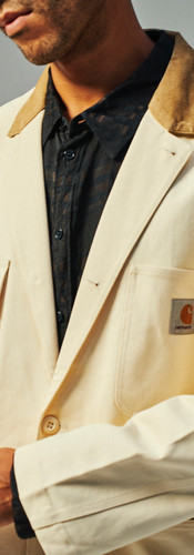 Carhartt WIP x Kunichi Nomura 系列迎來西裝外套和西裝褲,設計結合經典工裝的工藝、細節、精緻的剪裁以及斜紋布料的使用。單品都具有兩用的實用性,野村將其描述為「陰與陽」、「日與夜」及「工作與玩樂」。