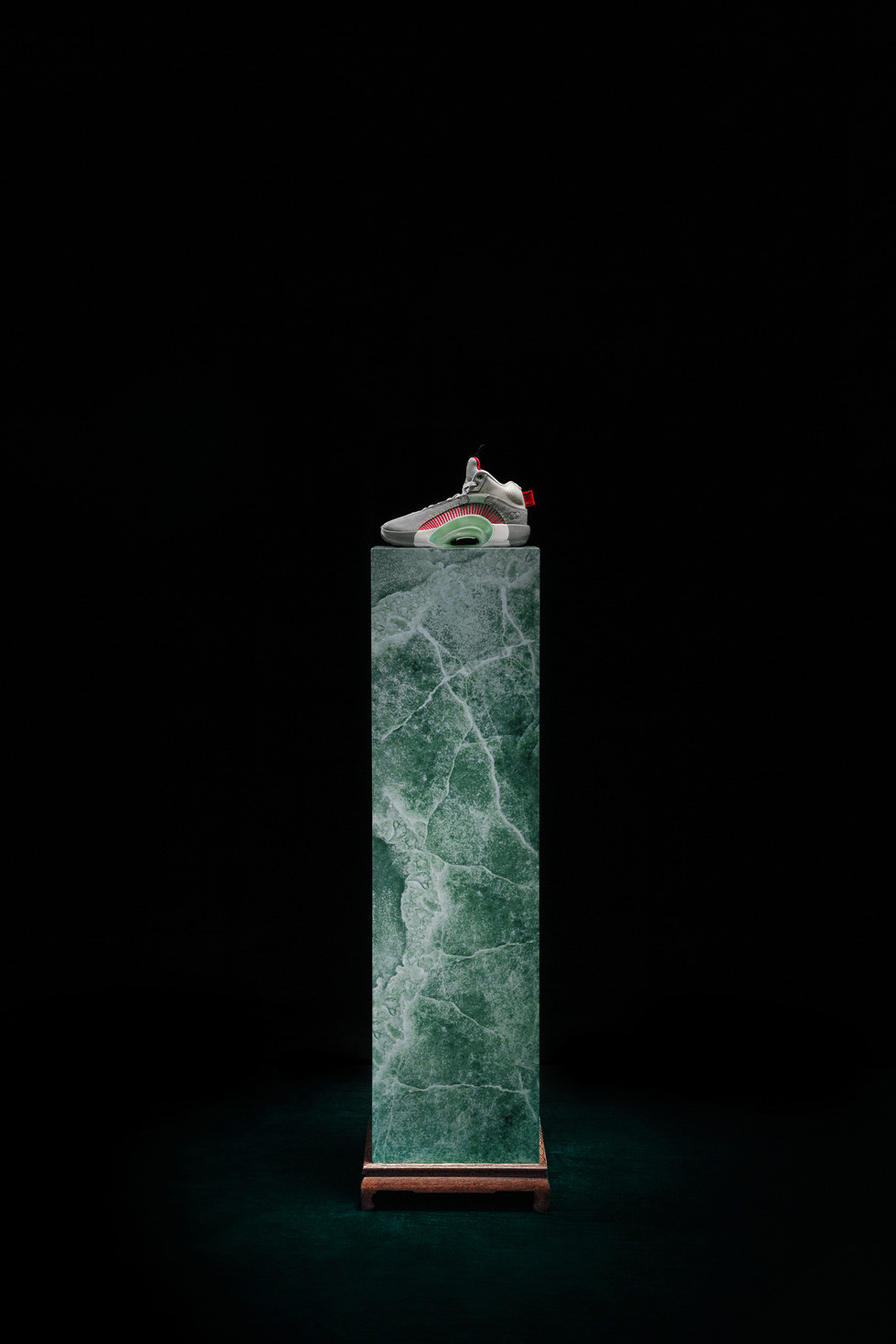 作為與 Air Jordan XIV Low x CLOT 同步發售的鞋款,代表著在 CLOT x Jordan 品牌的探險歷程中是一項特殊並極其稀有的發現。靈感來自 Michael Jordan 對籃球運動的熱愛及其運動精神的衣缽,Air Jordan XXXV x CLOT 中包含的中國玉元素是 CLOT x Jordan 品牌故事的延續,代表著兩個品牌的核心價值。