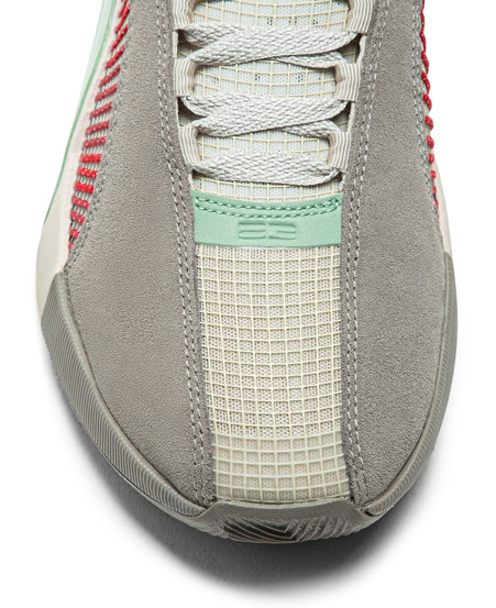 Air Jordan XXXV 是 Jordan 品牌研發的最新鞋款之一,以全新升級的 Eclipse Plate 中底科技,搭配前後掌 Zoom Air 氣墊科技,體現了 Jordan 品牌推動卓越性能與現代美學的核心價值觀。這款鞋的 Eclipse Plate 中底處有搶眼奪目的中國玉花紋圖案,搭配鞋身的大 膽紅色Flightwire﹐ 令鞋型更加立體突出。柔和的灰色翻毛皮鞋面,後跟裝飾著 Jumpman 和 CLOT Logo,反光細節結合金色鞋帶孔。 CLOT 向來都對整體設計一絲不苟,為顯得 Air Jordan XXXV x CLOT “ Warrior Jade ” 的矜貴﹐鞋盒用上 Air Jordan XXXV x CLOT “ Warrior Jade ” 的主要配色 - 灰和翡翠綠的特殊配色﹐絕對是收藏家不可缺少。