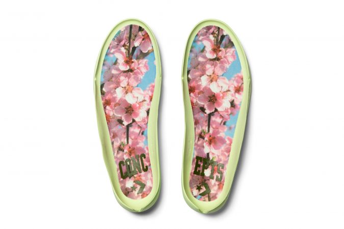 為致敬籃球文化的過去和未來,Converse 聯手 Concepts 打造經典 Chuck 70 和 All Star BB Evo 兩款聯名鞋型。此次設計靈感源於原始的籃球籃筐 —— 桃籃,將現代材料、性能和色彩共同注入。桃紅色 Southern Flame Chuck 70,使用反毛皮質感鞋面營造出蜜桃的細絨毛質感,鮮豔的印花暈染出新鮮的蜜桃色澤;青桃色 Southern Flame All Star BB Evo,以漸變色鞋面搭配綠色毛絨感鞋帶,為籃球場上帶去清新活力。