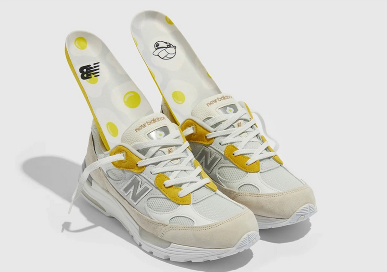 醞釀許久的 Paperboy 和 New Balance 992 的聯名球鞋 “ Fried Egg ” 終於要公開發售了!全鞋以米色、白色以及蛋黃色作為主色調,在視覺上的 “ 美味 ” 加分之餘,鞋舌部分的小煎蛋圖案更是增添了不少趣味性。