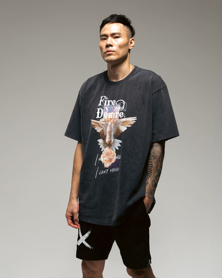張宗憲:我自己最喜歡的是 Fire and Desire 鴿子系列,像這種灰白及水洗黑T-Shirt 再搭配上的自由度很高,不管是牛仔褲甚至是短褲都可以搭配出具有 Vintage 質感的個性穿搭。