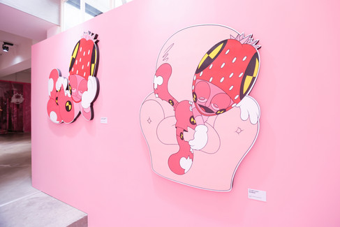 「夢想需要實踐,但也可能只是日常的逃避。」這份矛盾成為展覽的核心,配合粉紅色牆面和本次的主視覺、新角色「We Care」綠色小狗的亮相,幽默又深刻地象徵了現代人表面關心實則疏離的特質。靈感來自畫家周春芽的《綠狗》系列,這隻小狗代表了人們說「我在乎」卻僅流於表面的荒謬,成為展覽最引人注目的亮點之一。