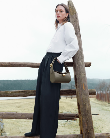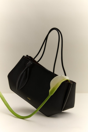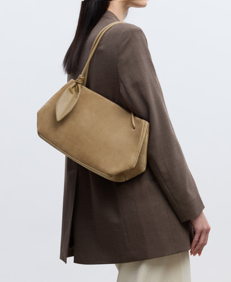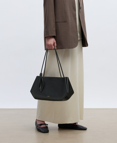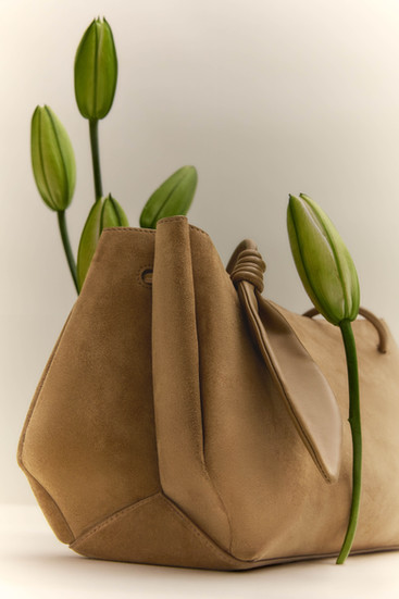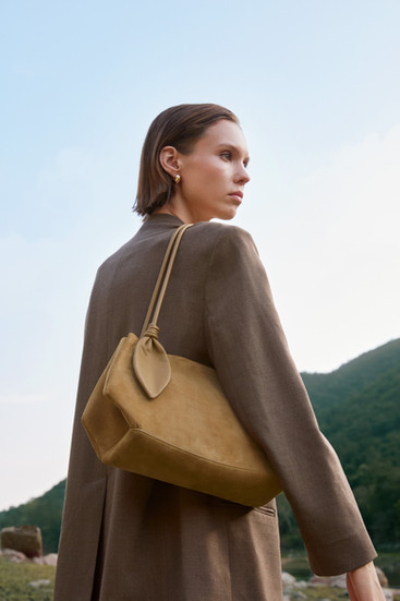 延續品牌以植物為設計靈感,Ori Shoulder Bag 特意融入葉形結飾,象徵靜謐成長與蛻變。圓管手柄,則模仿植物莖部。黑色 Ori Shoulder Bag 選用頂級頂級義大利納帕皮革 (Nappa) 製作 ,提供奢華觸感。沉穩的黑色百搭耐看,知性優雅,是當代都會女性之選。柔霧黃色則換上細緻麂皮,柔和內斂,盡顯現代女性的柔韌氣質。